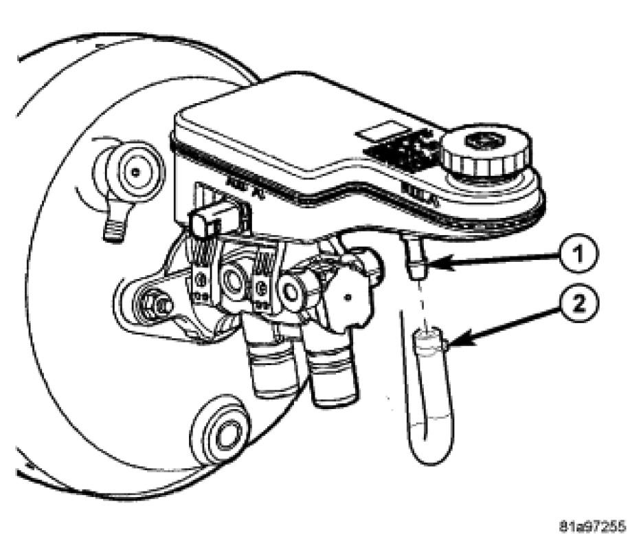 CAUTION: When installing a master cylinder on the vehicle, a NEW vacuum O-ring seal (2) MUST be installed on the master cylinder mounting flange (1).