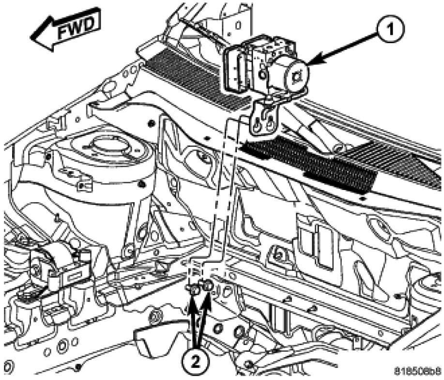 1. Install the ICU with bracket (1) through the opening between the A/C lines and the exhaust manifold using the opposite of how it was removed.