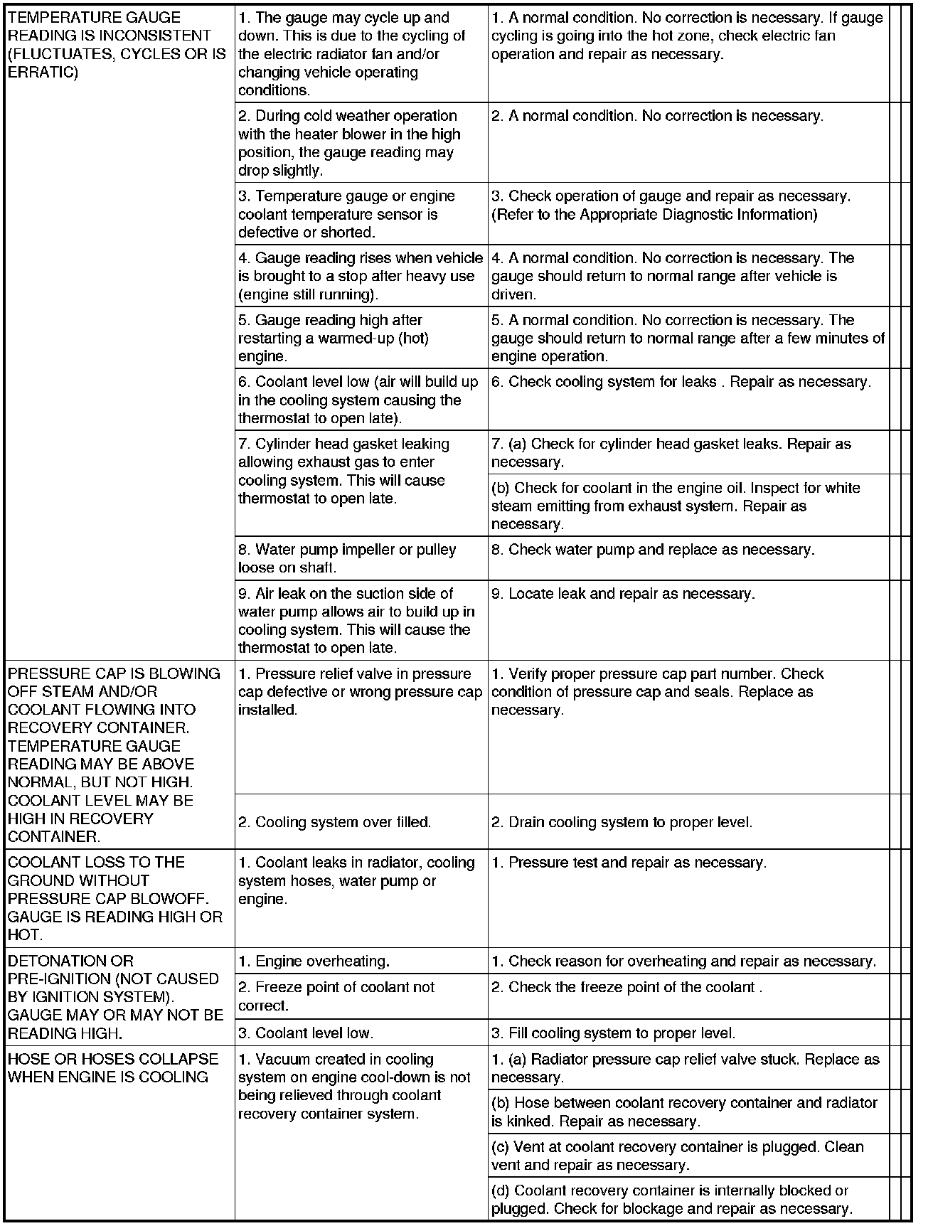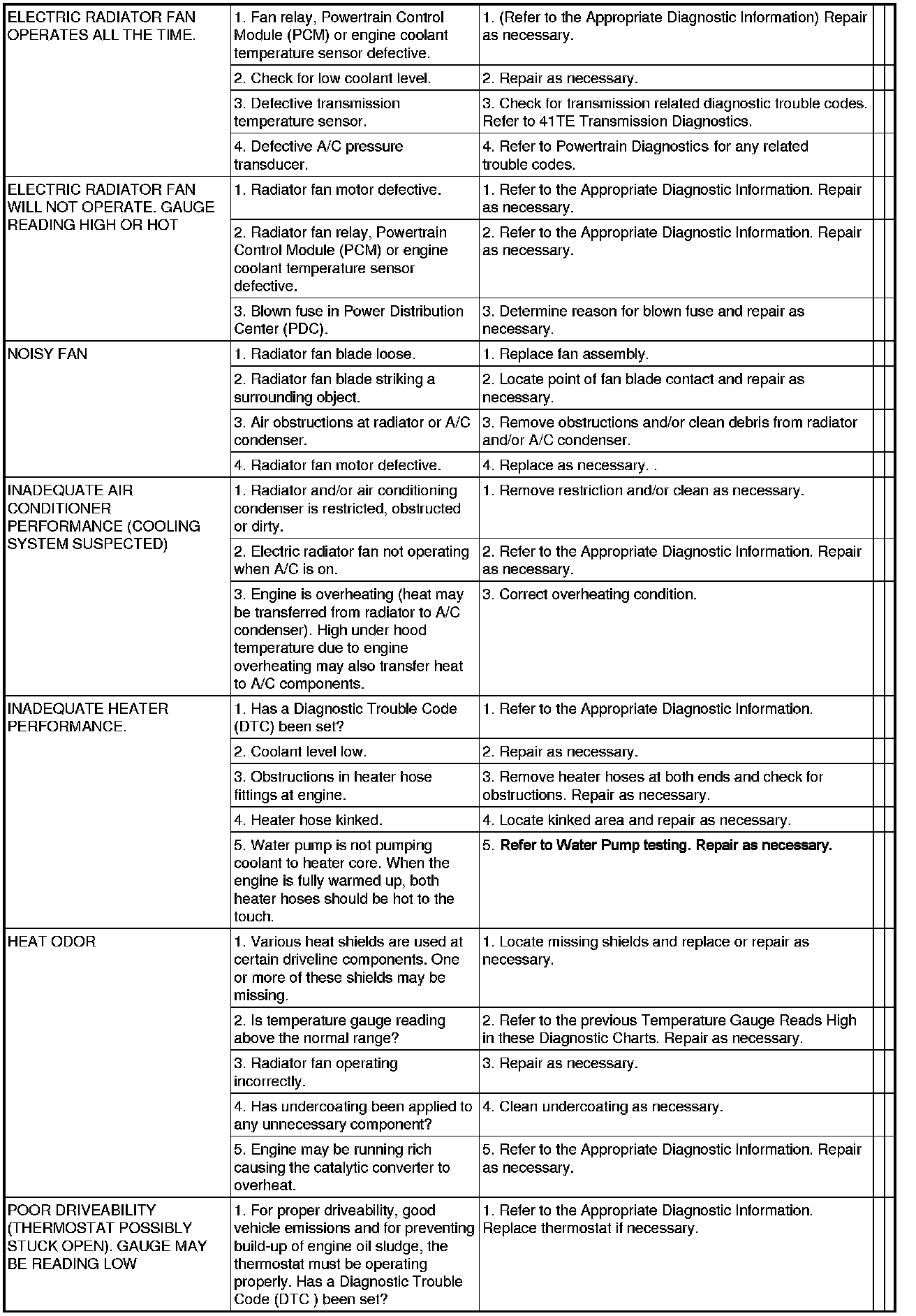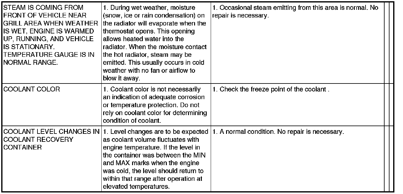 NOTE: If investigation reveals none of the previous items as a cause for an engine overheating complaint, refer to the COOLING SYSTEM DIAGNOSIS CHART.