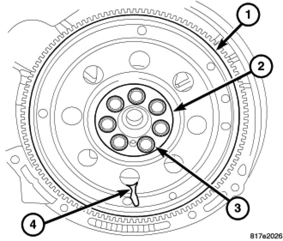 3. Remove flex plate/flywheel (1).