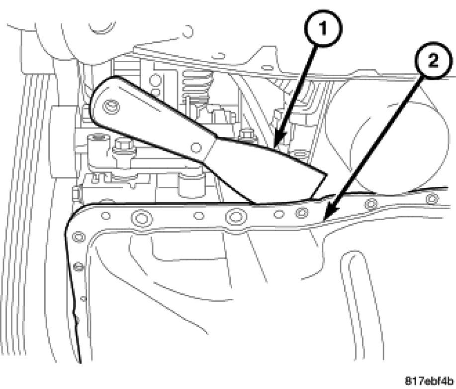 11. Remove the oil pan (2)Engine Oil Pan - Removal.