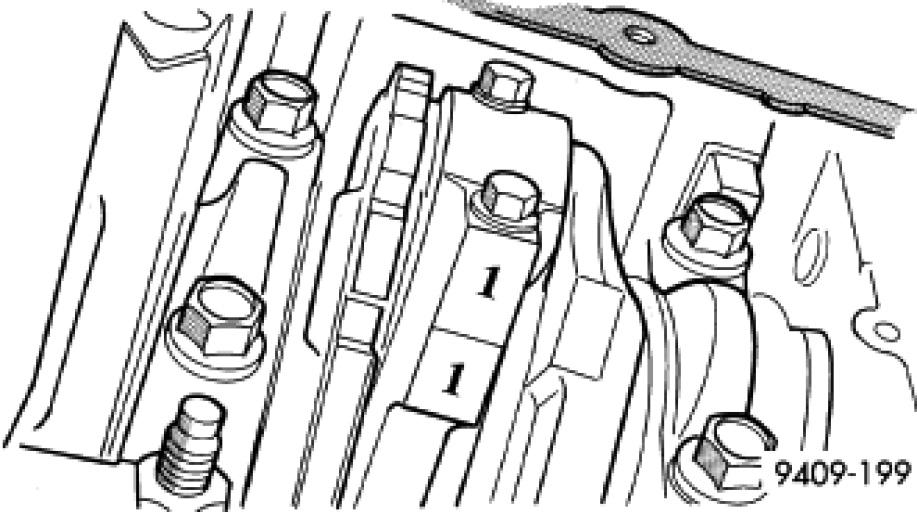 10. Remove engine mount support bracket (1).