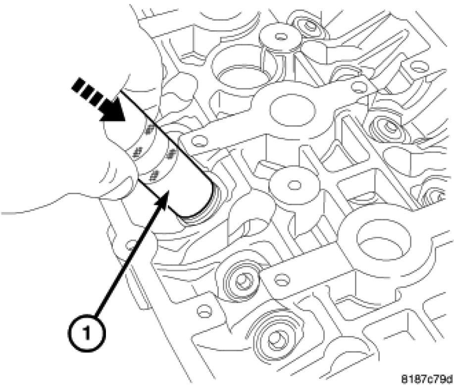 7. Using metric valve keeper tool (1) such as Snap-on(R) GA317 (or equivalent), and remove valve spring keepers and retainer.