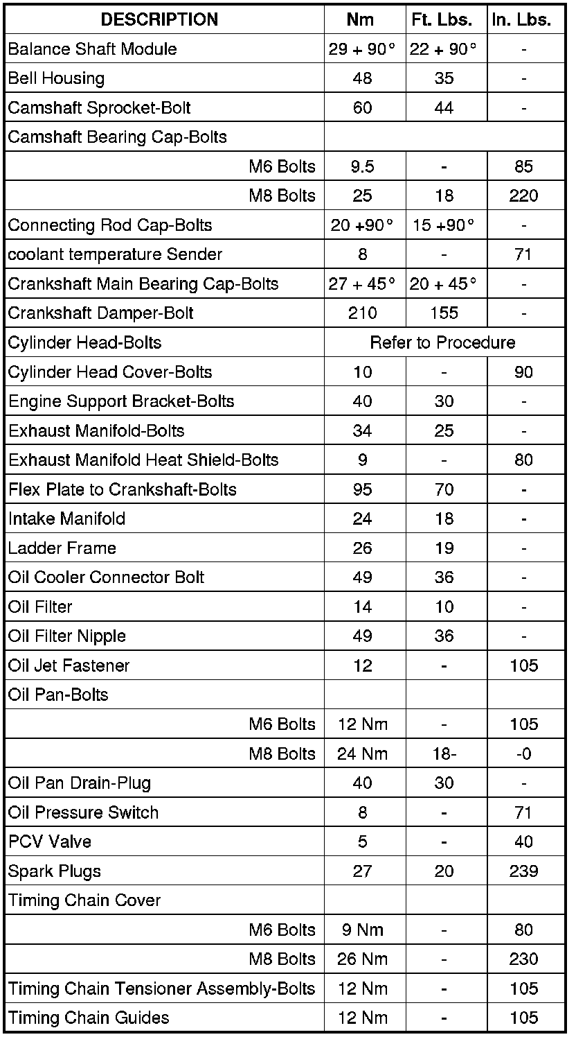 Exhaust Manifold Bolts 34 Nm (25 Ft.Lbs.)