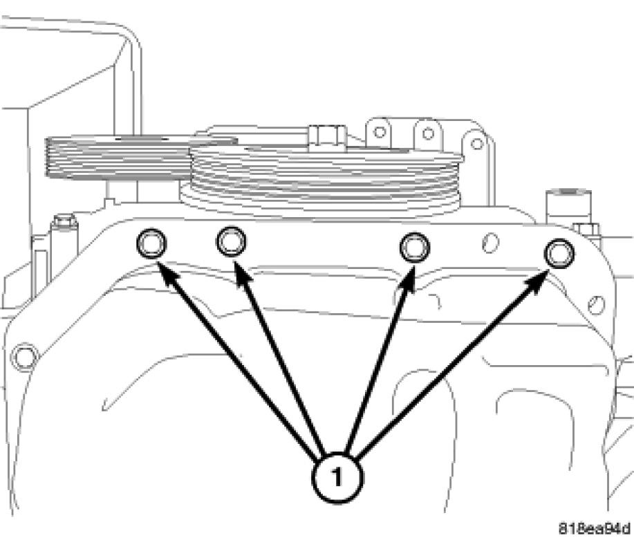 14. Remove lower A/C compressor (1) retaining bolts.