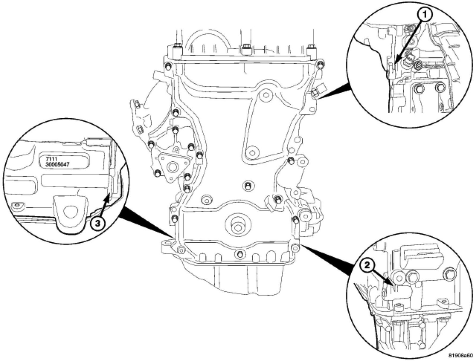 31. Remove timing chain cover using pry points (1,2,3).