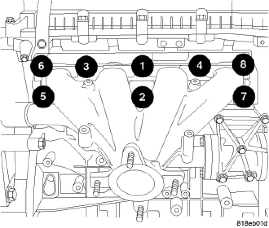 9. Remove exhaust manifold retaining fasteners.