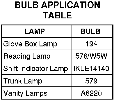 CAUTION: Do not use bulbs that have a higher candle power than the bulb listed in the Bulb Application Table. Damage to lamp can result.
