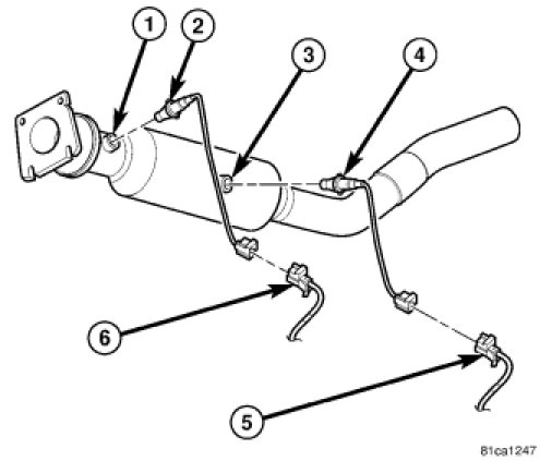 1. Install the O2S (4) to catalytic converter (3). Tighten to 41 Nm (30 ft. lbs.).