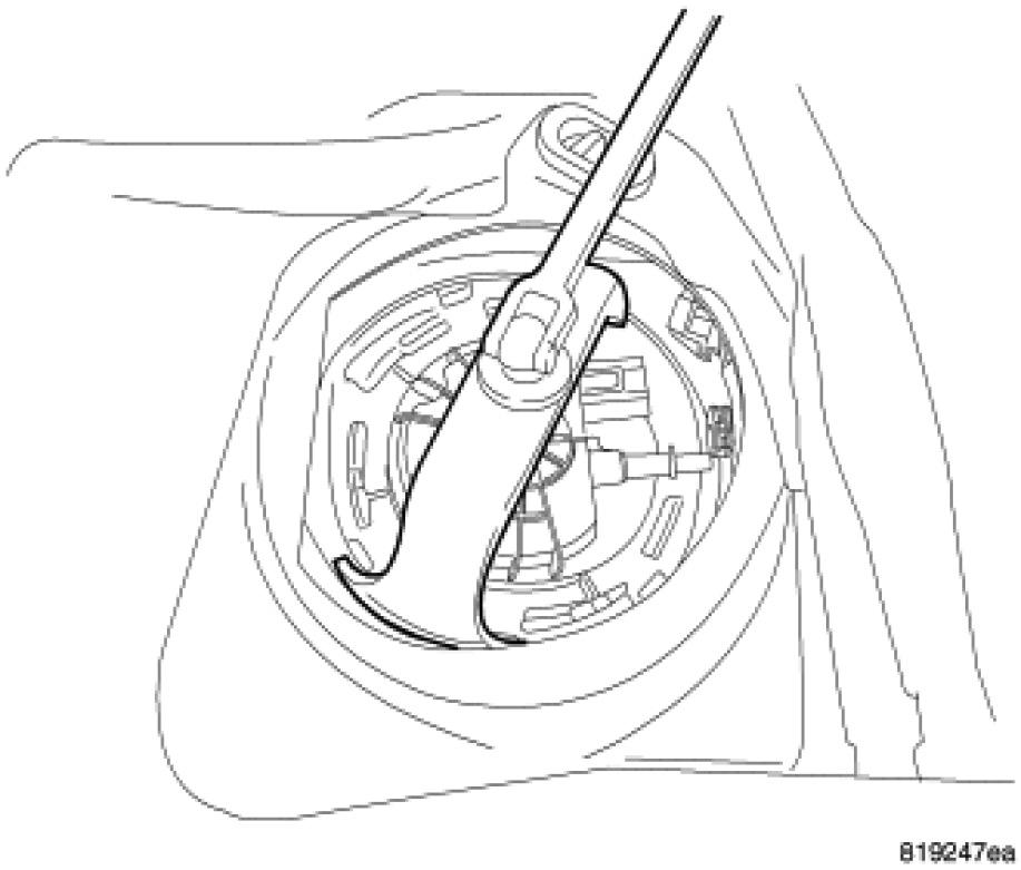 WARNING: The fuel reservoir of the fuel pump module does not empty out when the tank is drained. The fuel in the reservoir will spill out when the module is removed.