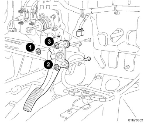 CAUTION: The accelerator pedal and mounting nuts need to be torque in a mandatory torque sequence or damage could result to the pedal assembly.