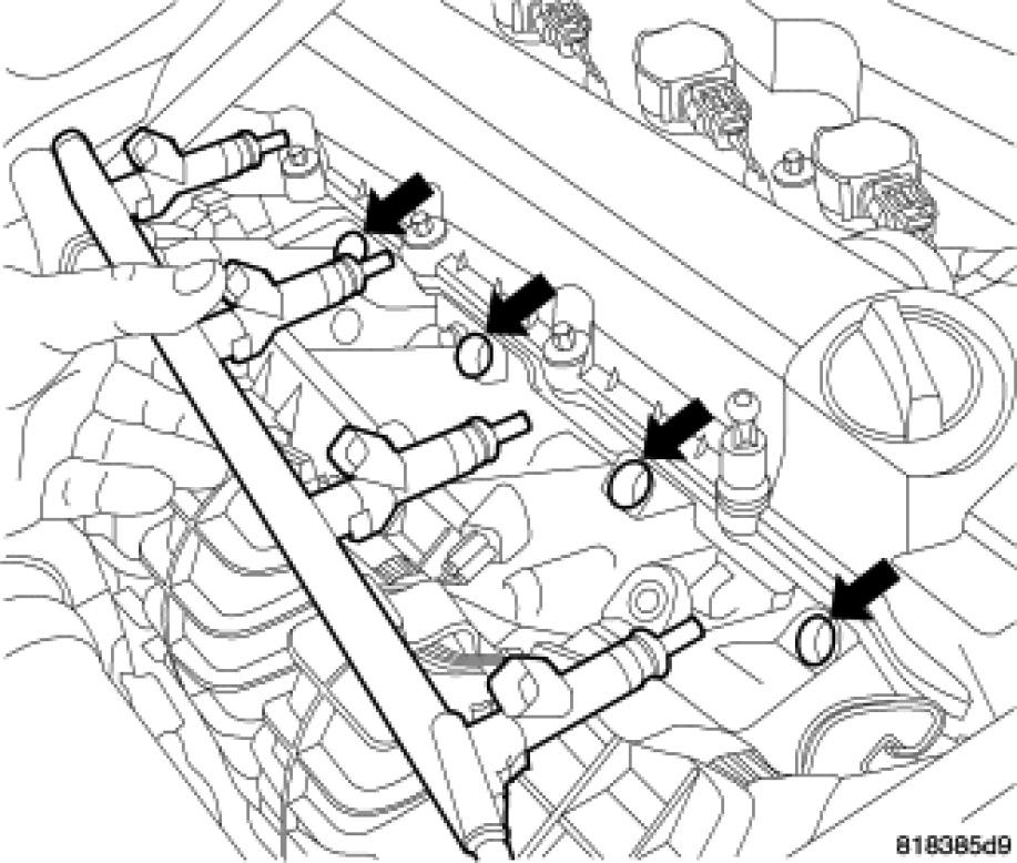 10. Remove fuel injector clip and fuel injector from fuel rail.