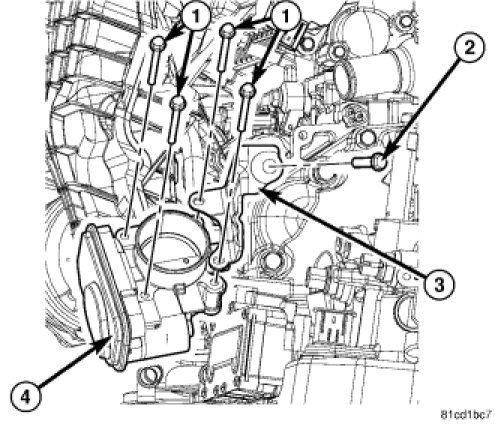 4. Install throttle body support bracket (3), bolt (2) and hand tighten.