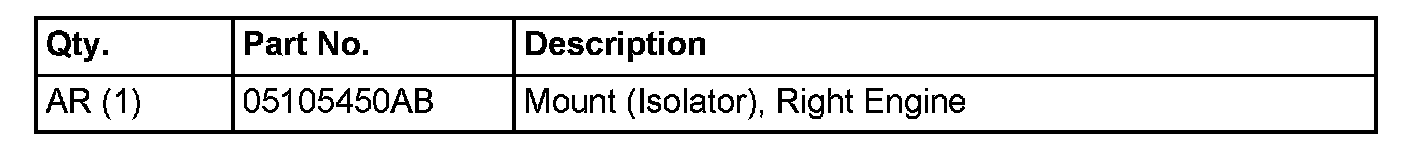 1. Following the procedures listed in DealerCONNECT > TechCONNECT, replace the right engine mount with pn 05105450AB.
