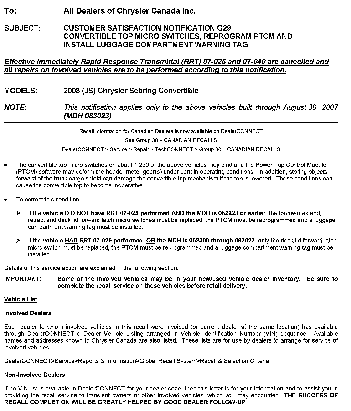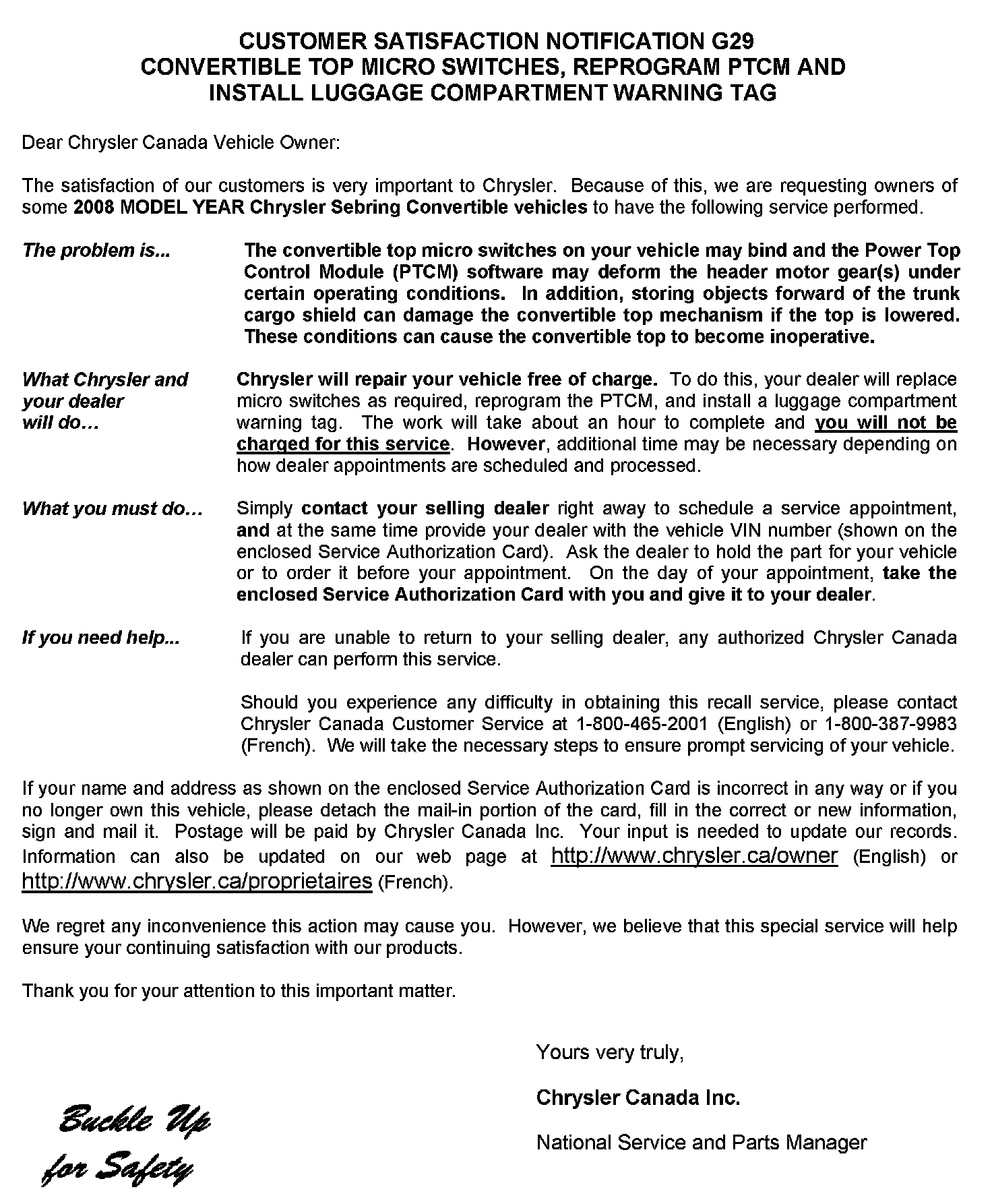Canada - Campaign - G29 Convertable Top Switches/Reprogram PTCM
