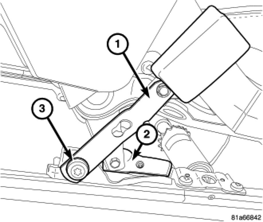 1. Position the buckle (1) on the seat cushion frame (2).
