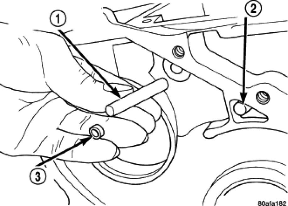 9. Install anchor shaft and plug (3). Make sure guide bracket and split sleeve are in contact with the rear of the transaxle case.