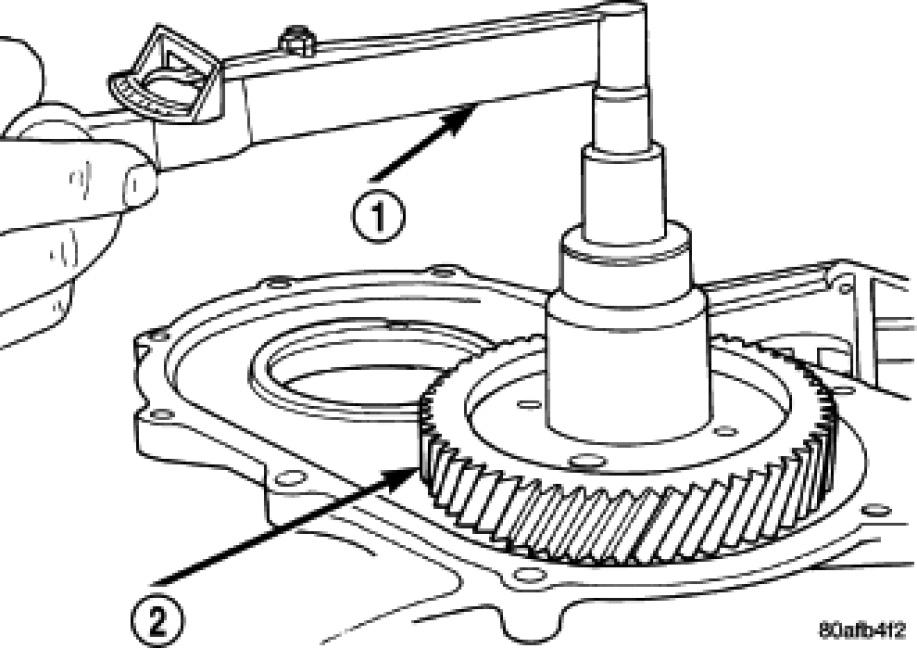 c. Measure end play. Attach Gear Checking Plate L4432 to the transfer gear.