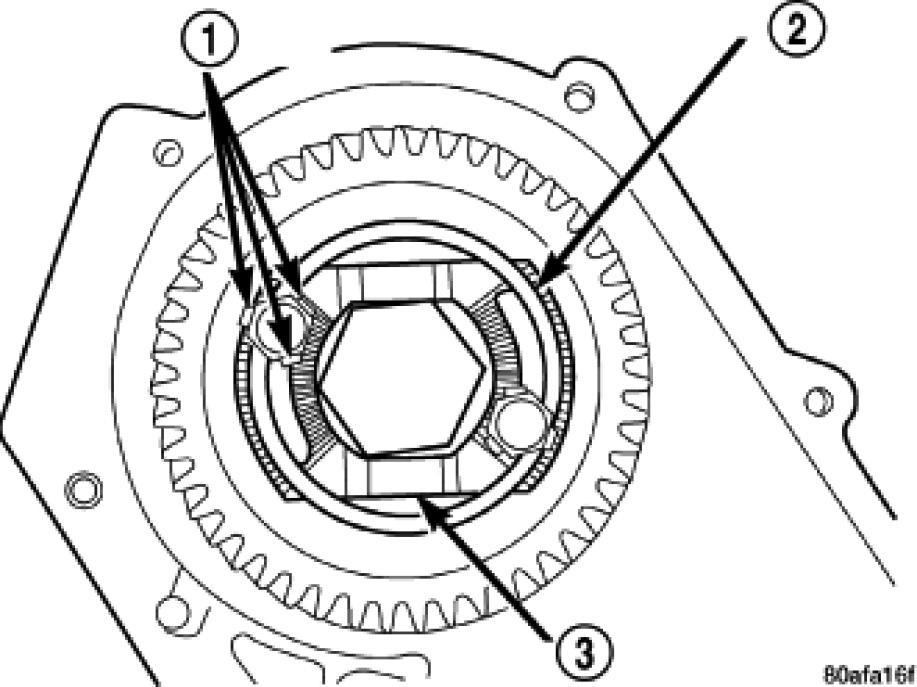 19. Install NEW output gear retaining bolt (2) and washer (3).
