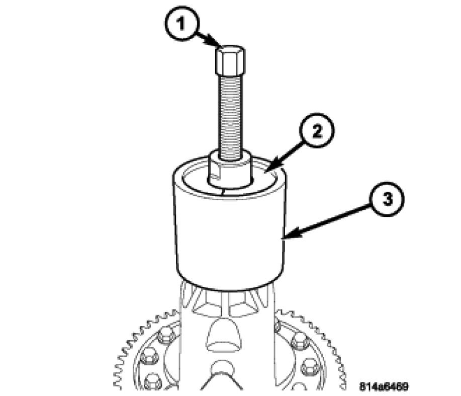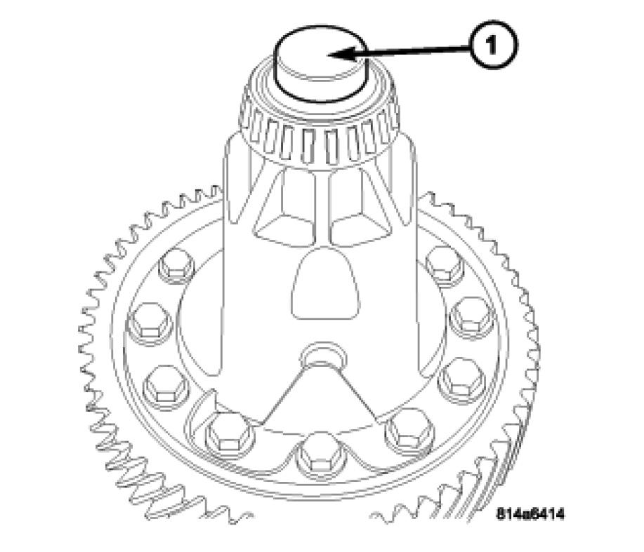 10. Remove differential side bearing cone from outboard end (opposite ring gear) of differential. Install Thrust Button L-4539-2 (1).