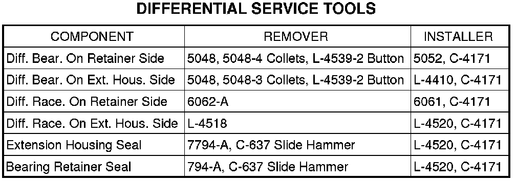 NOTE: The transfer shaft should be removed for differential repair and bearing turning torque checking.