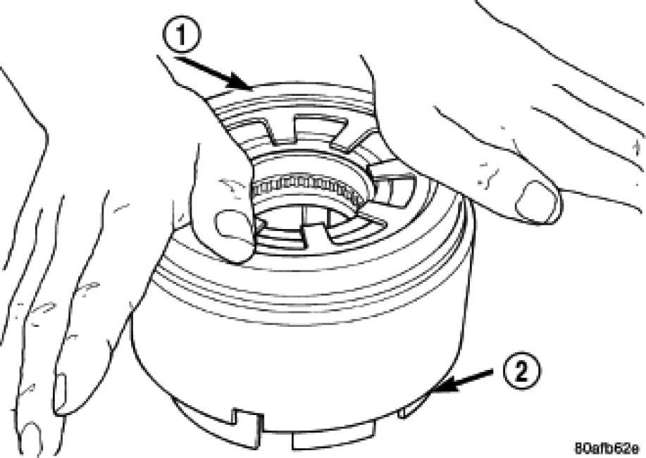 5. Install the OD/Reverse piston assembly (1) to the input clutch retainer (2).