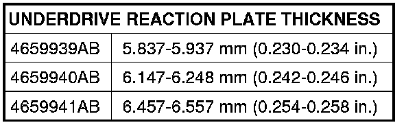 22. Take average of four measurements and compare with UD clutch pack clearance specification. Underdrive clutch pack clearance must be 0.94-1.50 mm (0.037-0.059 in.).