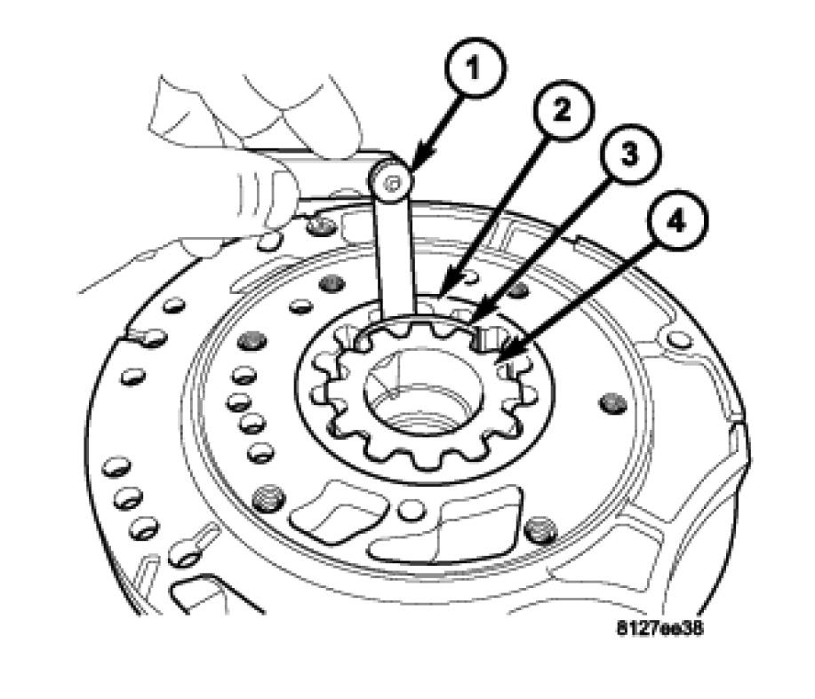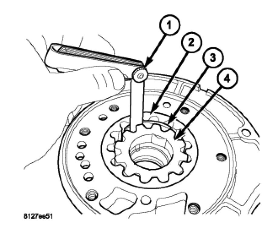 6. Measure clearance between outer gear (2) and crescent (3). Clearance should be 0.060-0.298 mm (0.0023-0.0117 in.).