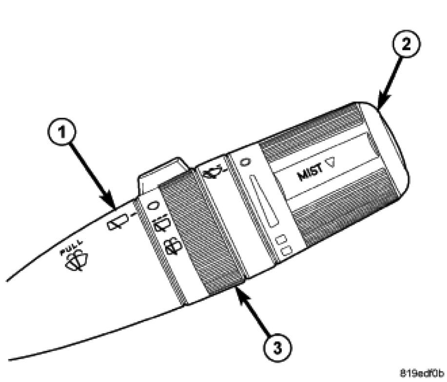 The right (wiper) multi-function switch provides the vehicle operator with a control interface for the following wiper and washer system functions: