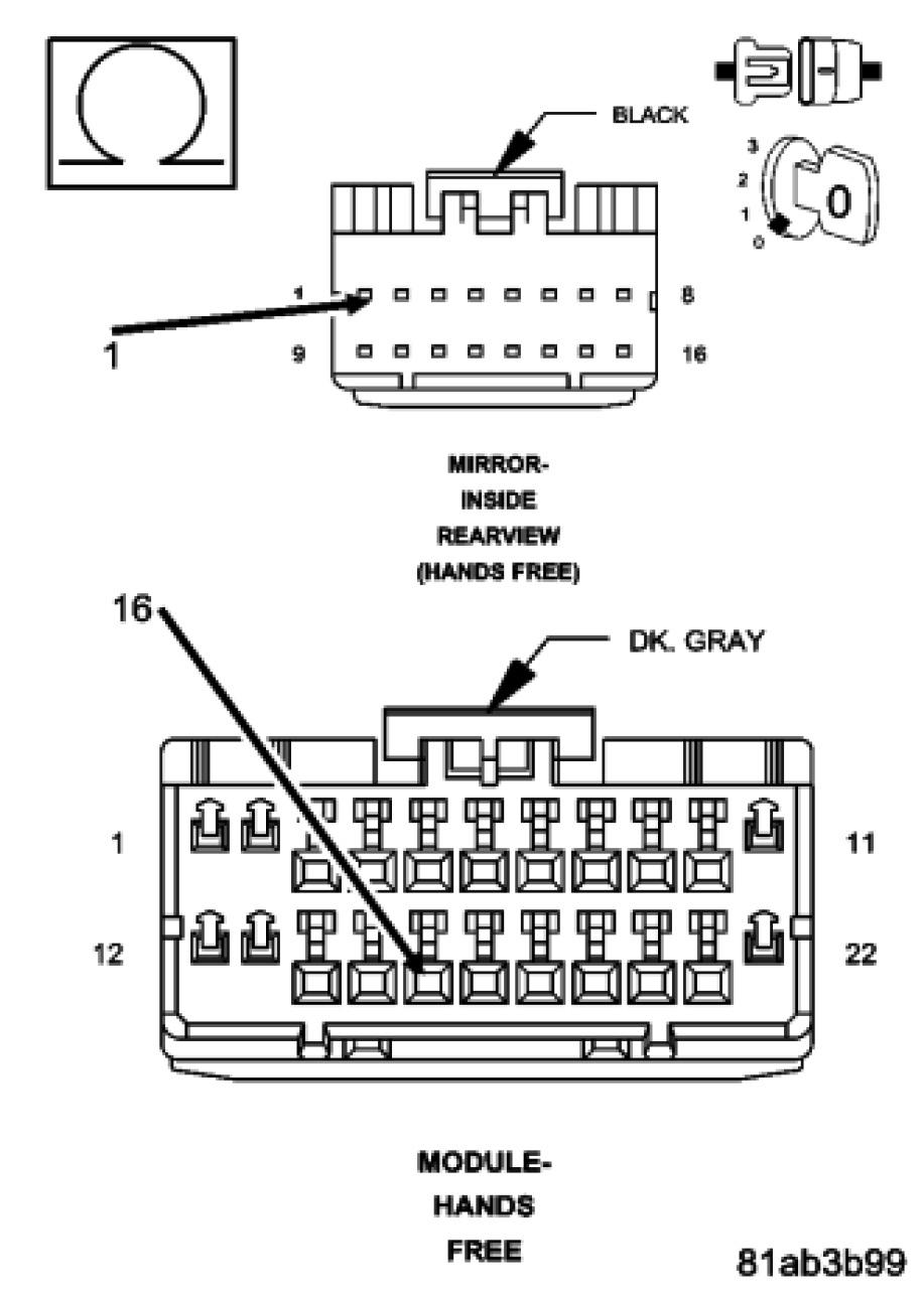 Measure the resistance of the (X712) Microphone 1IN (+) circuit between the HFM connector and the inside rearview mirror connector.