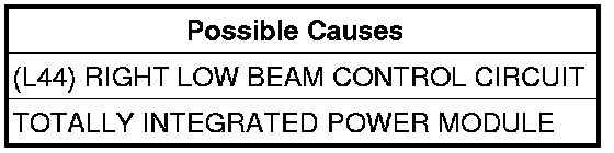 - Repair the (L44) Right Low Beam Control circuit for a short to ground condition.