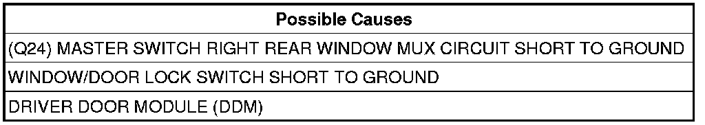 3. (Q24) MASTER SWITCH RIGHT REAR WINDOW MUX CIRCUIT SHORT TO GROUND