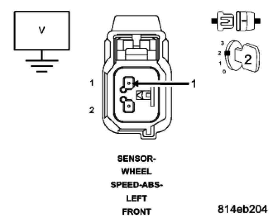 Measure the voltage between the (B8) Left Front WSS Signal circuit and ground.