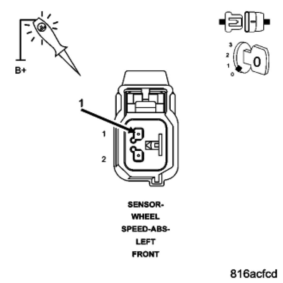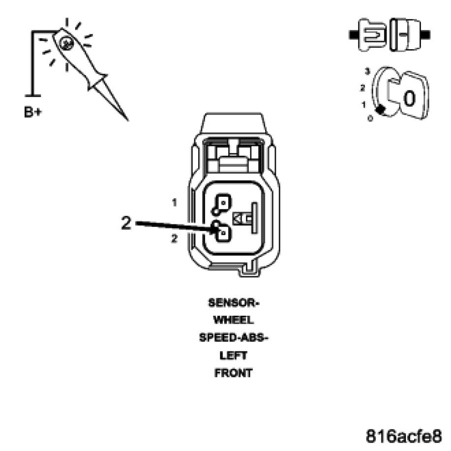 Using a 12-volt test light connected to 12-volts, probe the (B8) Left Front WSS Signal circuit.