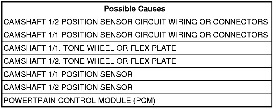 Inspect the Camshaft 1/2 Position Sensor and mounting area for any condition that would result in an incorrect signal, such as damage, foreign material or excessive movement.