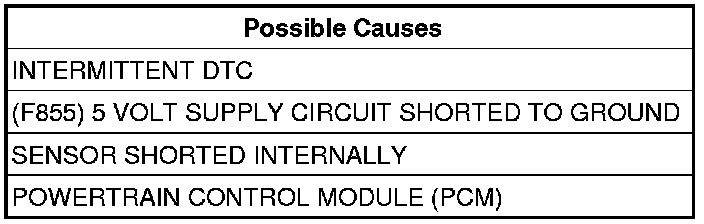 Disconnect the connector for each sensor or component that shares the (F855) 5 Volt Supply circuit, one at a time, and note the circuit voltage.