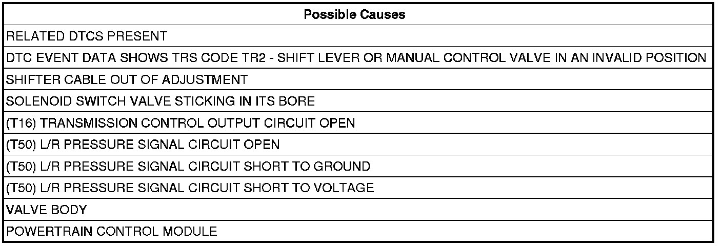 - This indicates the shift lever and the manual control valve were in an invalid position between Neutral and OD. Check the shifter cable for: proper adjustment, binding, friction, improper routing, or the shifter was moved in transit. Repair as necessary.