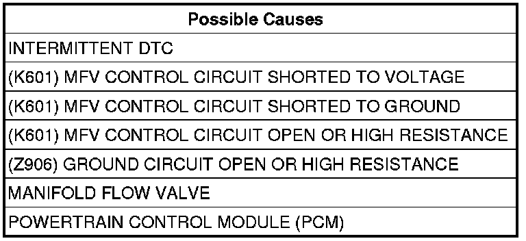 - Repair the (K601) MFV Control circuit for an open circuit or high resistance.