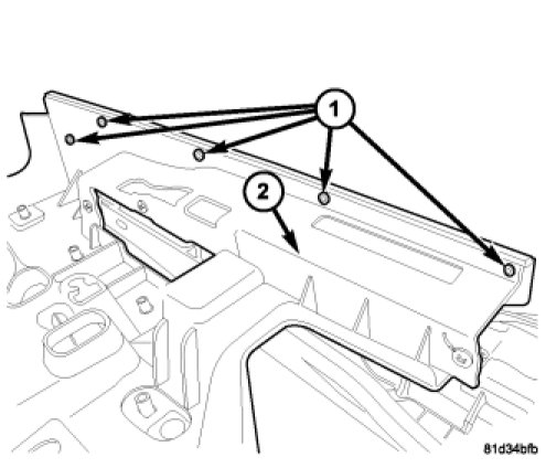 2. Inspect the welds (1) that attach the inner reinforcement (2) to the quarter trim at the upper outboard edge. If any of the welds are broken, replace the quarter trim panel.