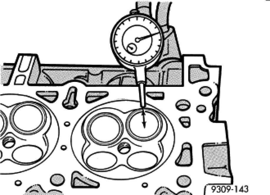 2. Measure valve stem-to-guide clearance as follows: