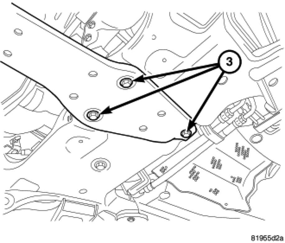 6. Remove crossmember mounting bolts (3).
