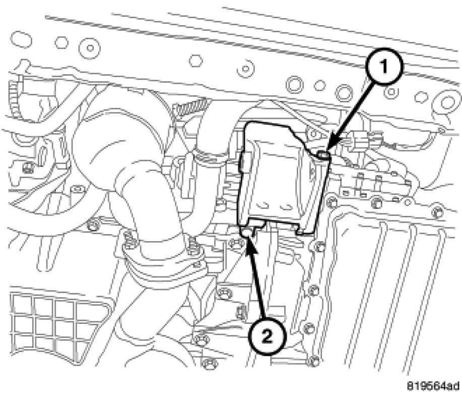 4. Remove front engine mount bolt (2).