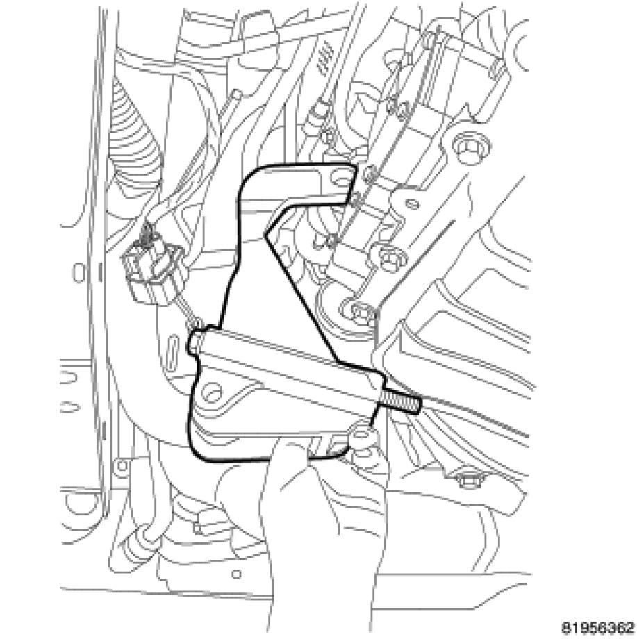 10. Remove the front engine mount bracket from engine block.