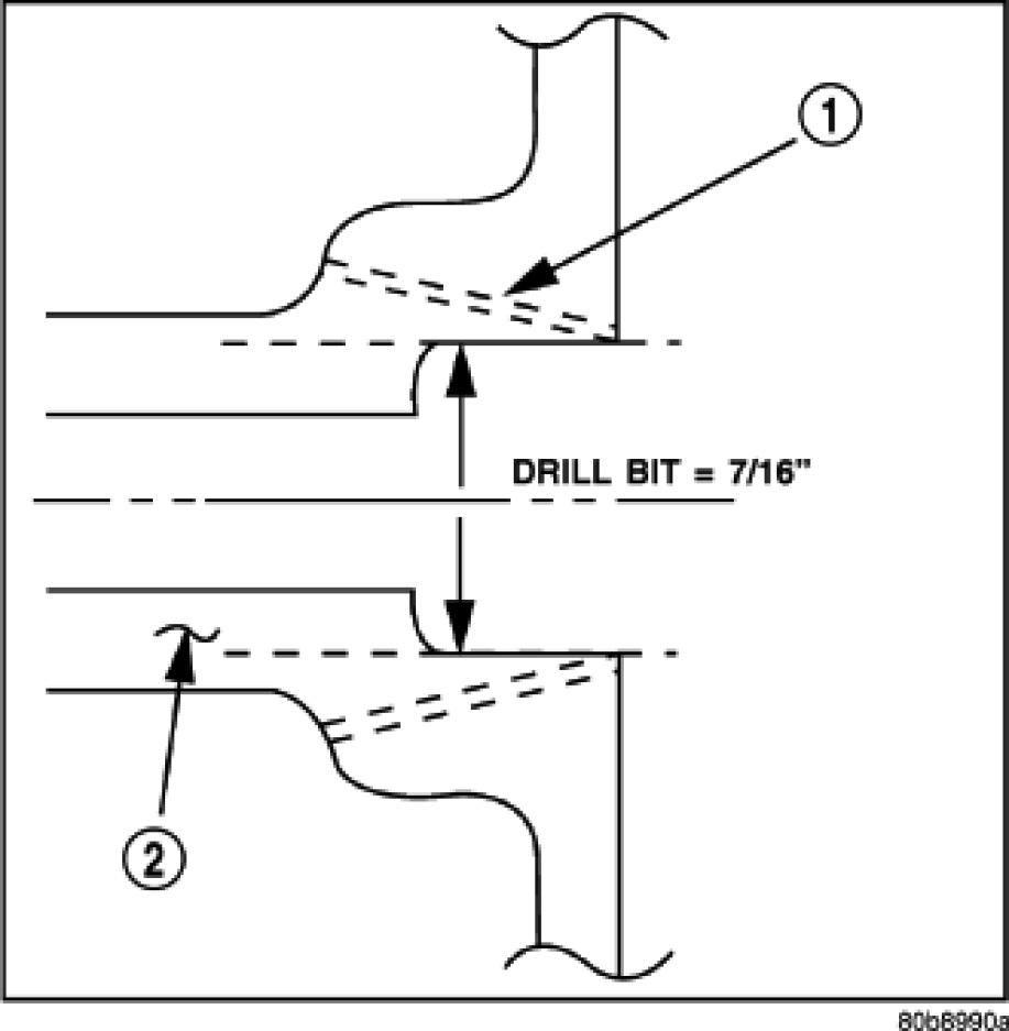 2. Drill out the nipple (port) base using a 7/16" drill bit.