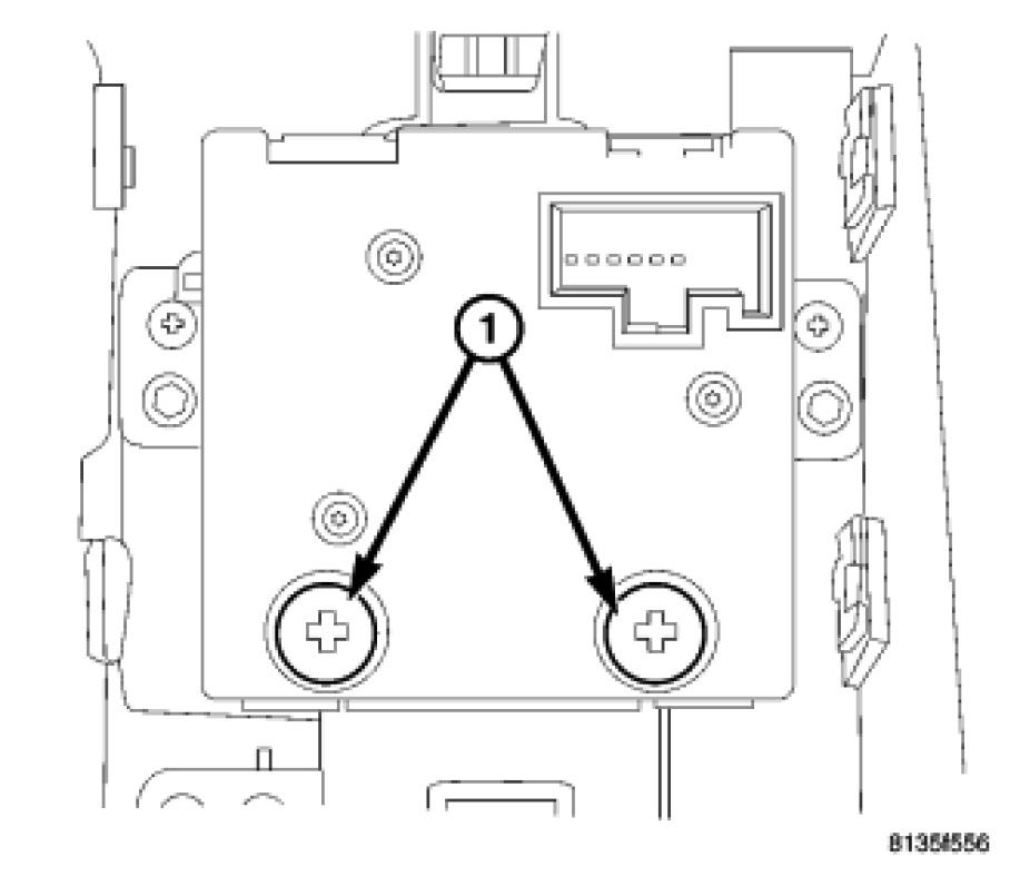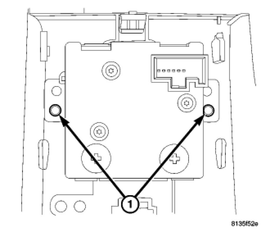 3. Remove the two retaining screws (1) holding the clock to the rear of the I/P Center Bezel.