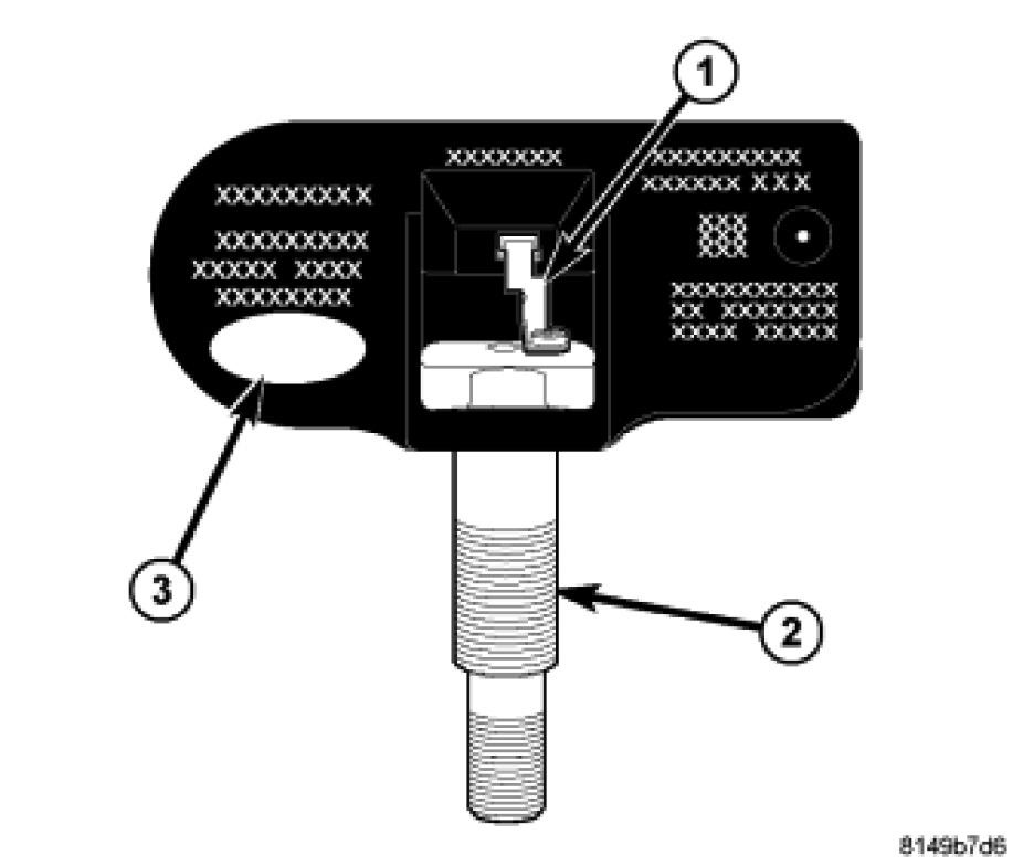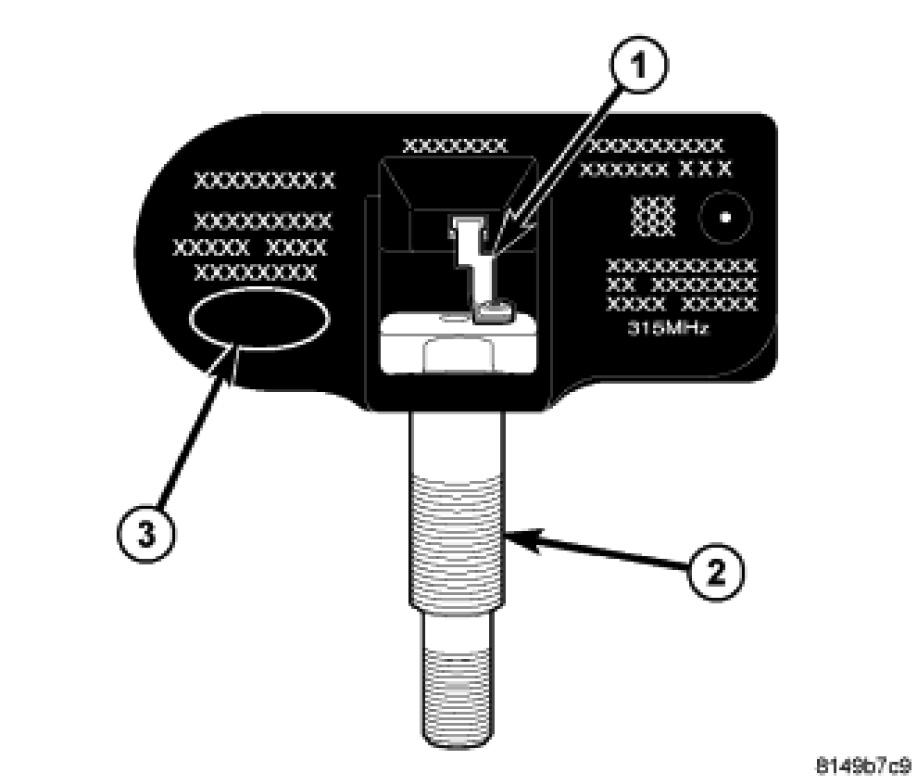 The TPM system operates on a 315 MHz radio frequency. The 315 MHz sensors can be easily identified by a white outline oval (black center) insignia (3) on the sensor body.