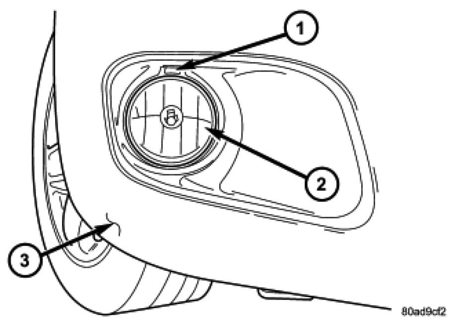 To adjust fog lamp unit alignment, rotate alignment screw (1) to achieve the specified low beam hot spot pattern.