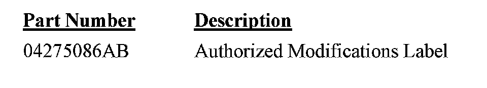 Due to the likelihood that the required label is already in your parts inventory, no labels will be distributed initially. The following label may be ordered as needed.