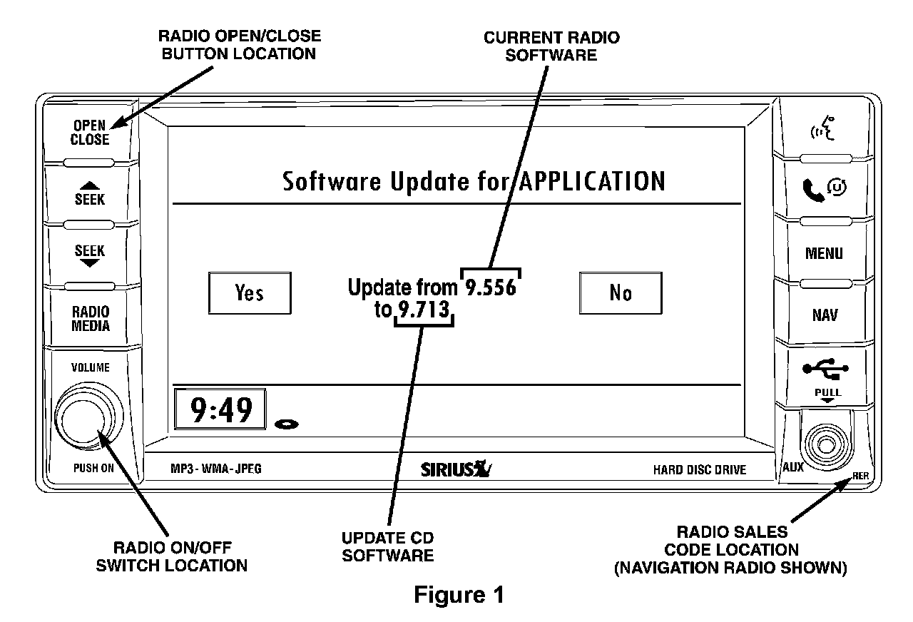 CD SOFTWARE number, the radio requires the update. Continue to Step 7.