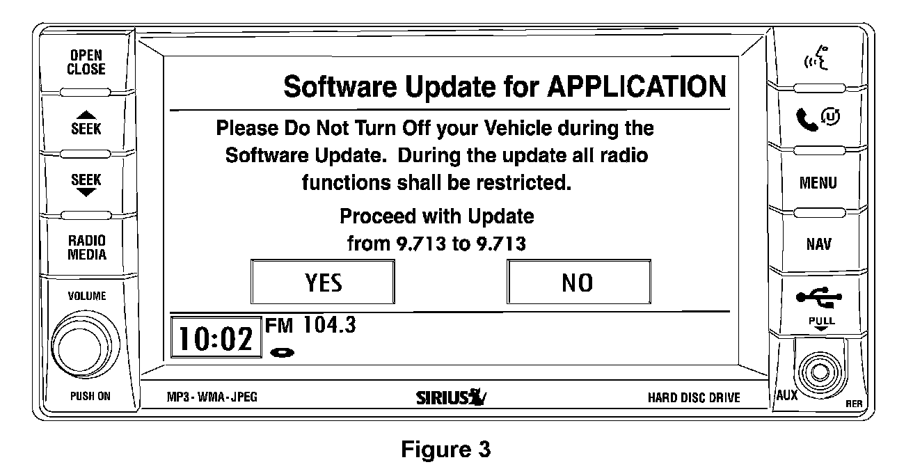 ONCE THE UPDATE HAS BEGUN, LEAVE THE IGNITION IN THE ON POSITION AND DO NOT TOUCH THE RADIO!